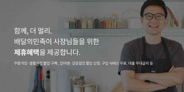 배달의민족은 외식업 자영업자를 위한 온라인 공간 ‘사장님사이트’ 내에 ‘제휴 혜택’ 페이지를 개설하고 다양한 서비스를 제공할 예정이다. 가게 운영에 들어가는 고정 비용을 줄이는 것은 물론, 개인 사업자에게 부담이 될 수 있는 비용을 줄여 자영업자를 돕는 차원에서다.
