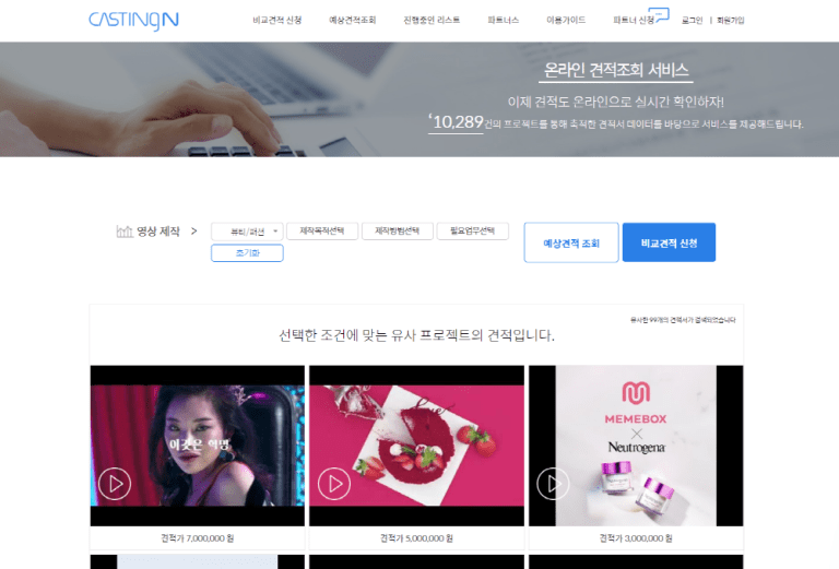 7. 캐스팅엔, 예상 견적 조회 서비스 분야 확대