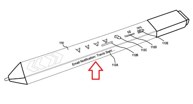이 특허기술은 스타일러스 펜 화면에 터치 스크린을 탑재해 펜의 두께나 색상을 터치해 선택할 수 있으며, 다른 UI 옵션도 제공한다. 또, 화면을 통해 이메일 알림이나 배터리 상태를 표시해 준다. 해당 특허는 둥근 펜과 사각형 펜 두 가지 디자인으로 신청됐다.