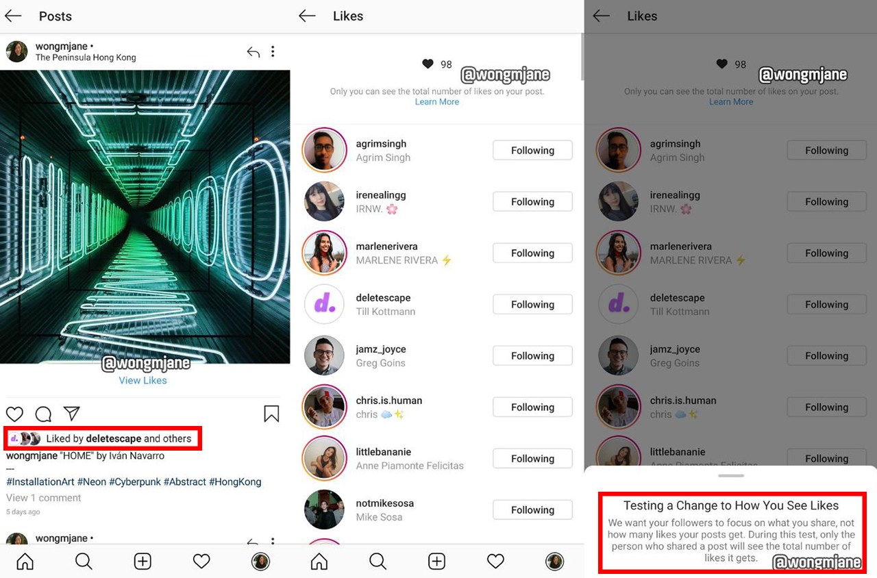지난 19일 홍콩의 엔지니어 제인 왕이 자신의 트위터를 통해 "인스타그램이 다른 사람들에게 '좋아요' 수를 숨기는 테스트를 하고 있다"라고 밝히면서 이 사실이 알려졌다.