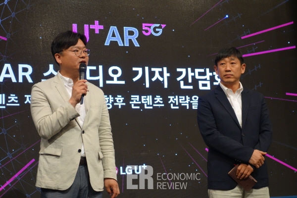 LG유플러스는 지난달 31일 서울 서초동 아리랑TV 스튜디오에서 AR콘텐츠 전략 기자간담회를 열고 자체 제작 콘텐츠를 대폭 늘리는 한편, 전략적 제휴를 통한 차별화된 콘텐츠 수급에 연내 100억원 규모의 투자 계획을 밝혔다.