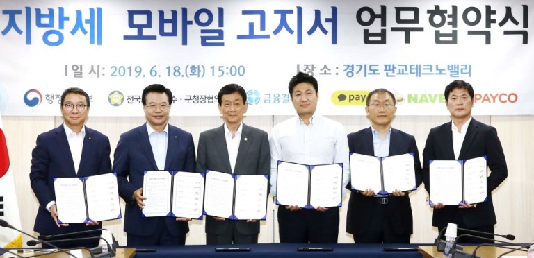 간편금융 플랫폼 기업 NHN페이코와 행정안전부 전국 지방세 모바일 고지·납부제 시행을 위한 업무협약을 체결했다. 지난 6월18일 성남시 판교 글로벌R&D센터에서 진행된 협약식에는 정연훈 NHN페이코 대표와 진영 행정안전부 장관, 김학수 금융결제원장을 비롯해 간편결제 업계 및 전국 기초지방자치단체 관계자들이 참석했다.